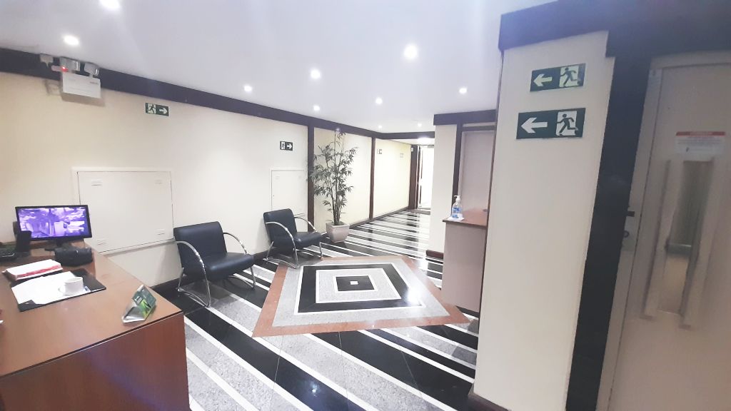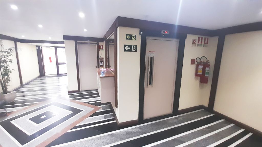 Excelente sala de frente, no quinto andar, prédio com elevador, piso em carpete, banheiro e box para estacionamento. Aproximadamente 50m² e próximo a Av. Palmeira. Taxas em torno de R$1100,00.