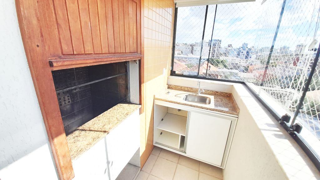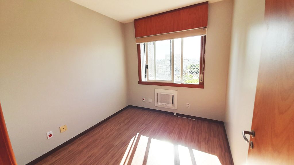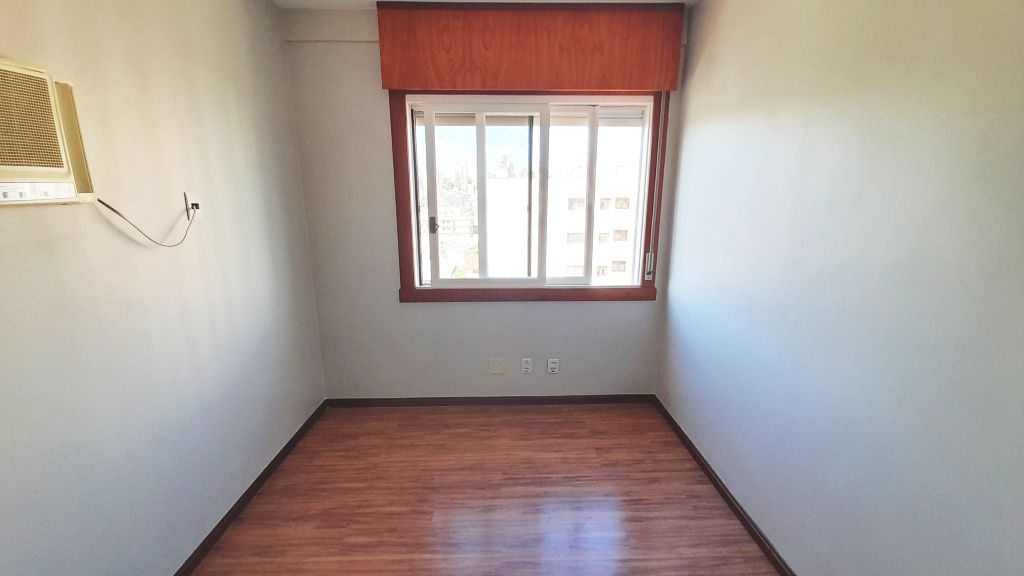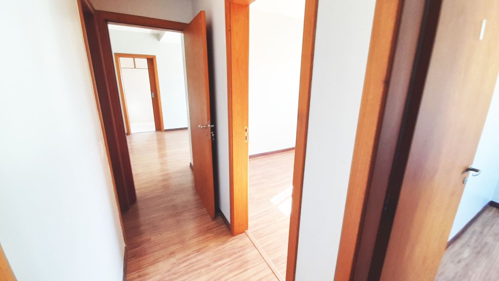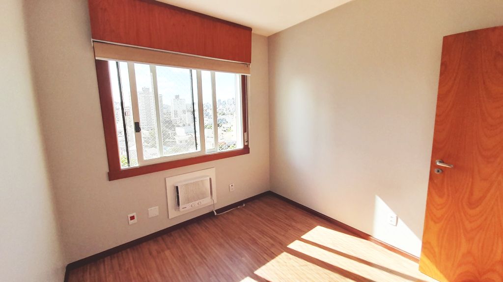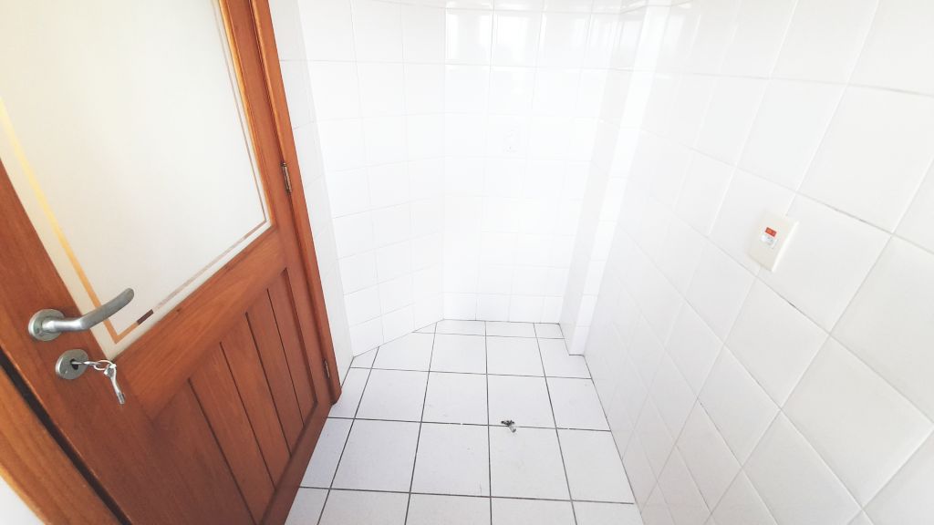 Excelente apartamento de fundos, sétimo andar, piso laminado, de três quartos, sendo uma suíte, sala, cozinha, banheiro social, com ar condicionado. Claro, ventilado, amplo, varanda com churrasqueira. Área de serviço fechada e uma vaga de garagem. Prédio com elevador, salão de festas e interfone com monitoramento por vídeo. Taxas R$1400,00.
